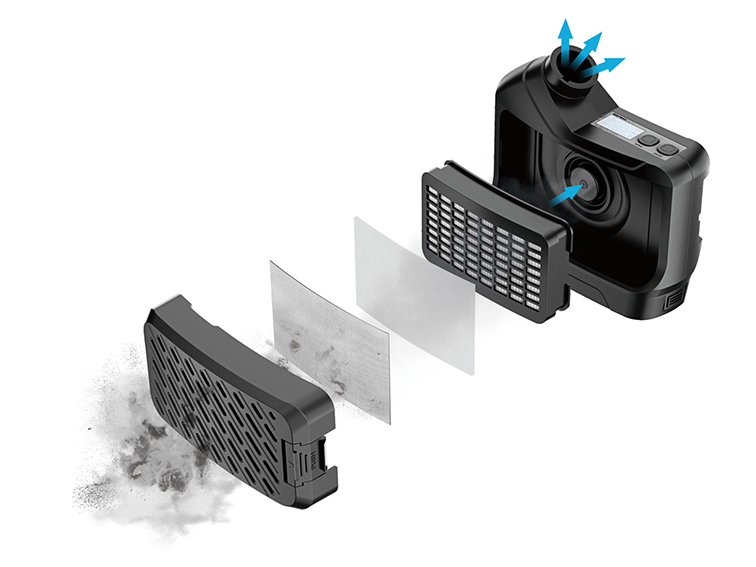 Alarm:Low air flow alrm, Low batter alarm, filter catridge replacement alarm
