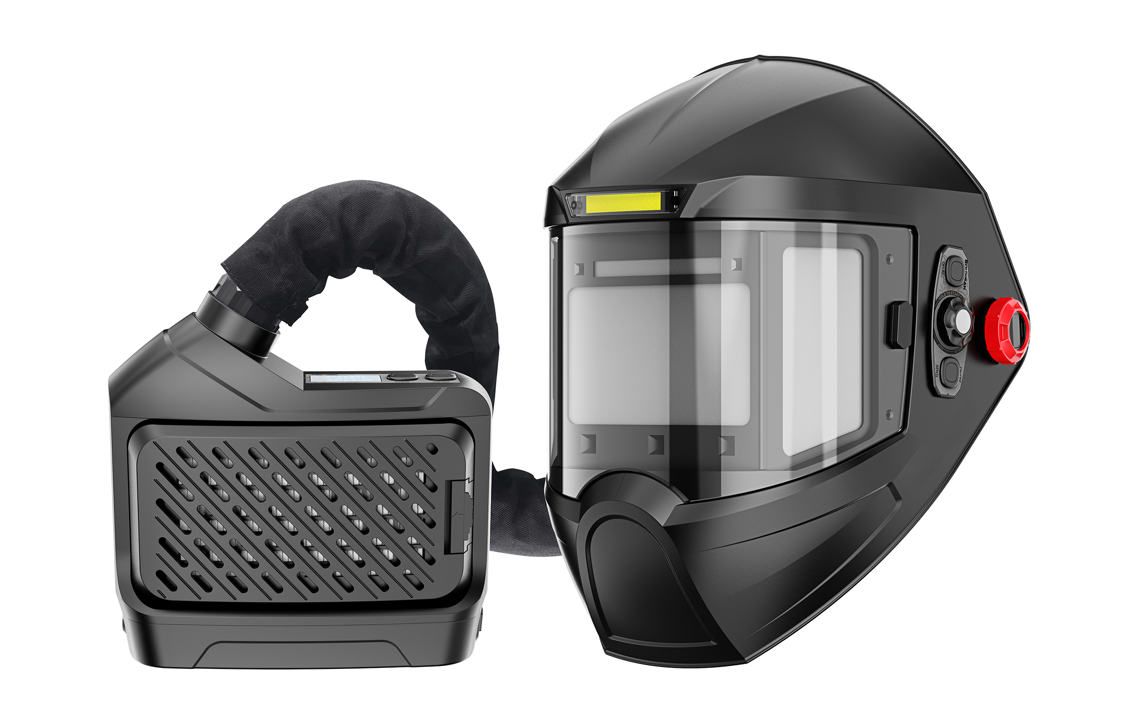 Helmet:Three filter viewing area, Panoramic large window.